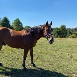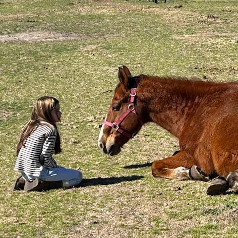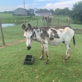 Shadow is a quarter horse gelding who knows first-hand about starvation and neglect. He was abandoned at a home for sale without water or food, rescued and nurtured back to health. Even though people have disappointed him, we've watched Shadow warm up to kids at the ranch and even play with the ranch toys!